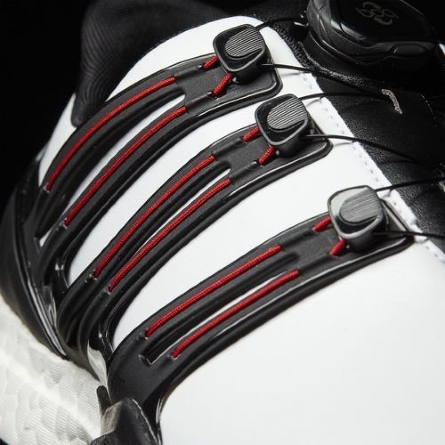Etiquettes : Adidas Powerband Boa Boost Wide Homme Footwear White/Core Black/Scarlet Golf Chaussures NO: Q44867, M00000385, Adidas Golf