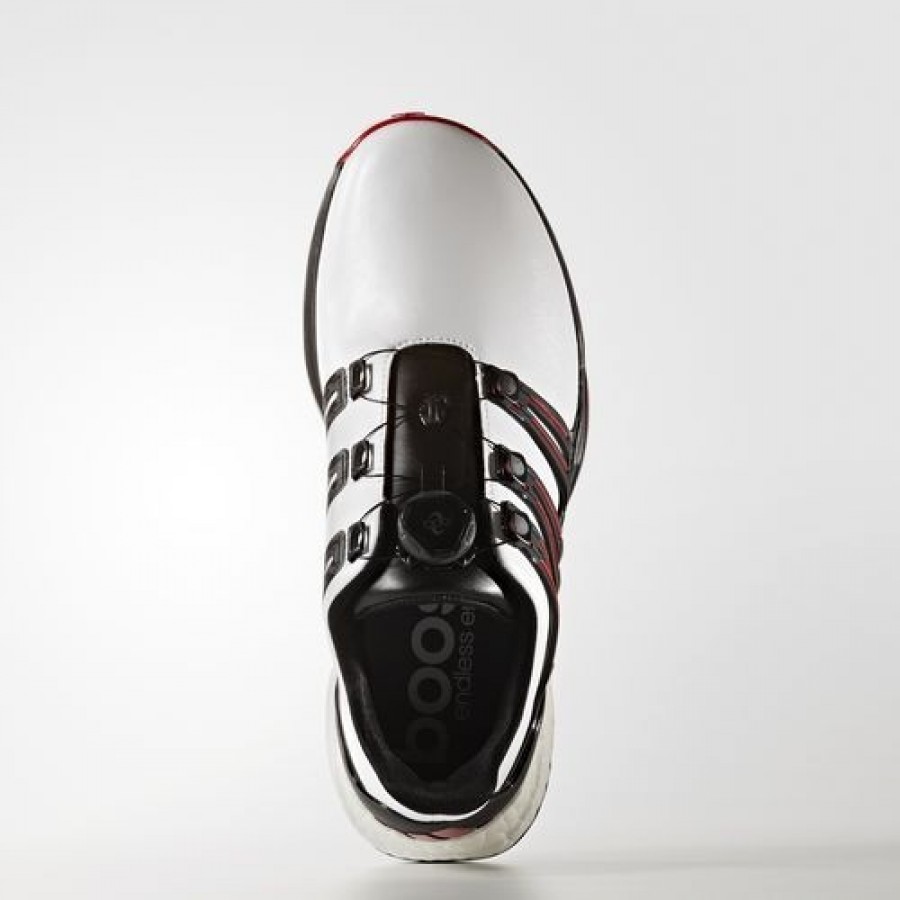 Adidas Powerband Boa Boost Wide Homme Footwear White/Core Black/Scarlet Golf Chaussures NO: Q44867